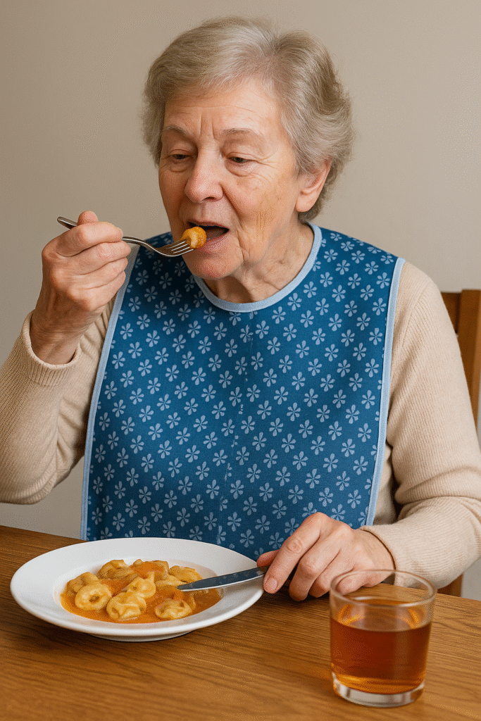 Seniorenlätzchen: Cleverer Kleiderschutz beim Essen